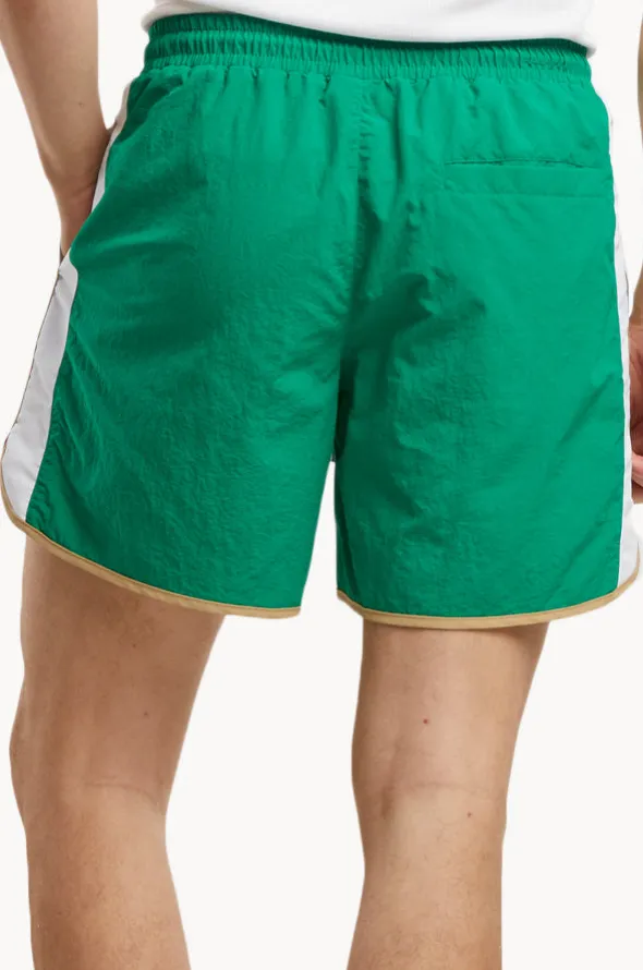 Urban Classics Mens Retro Swim Short in Green features an elasticated waistband, drawcord, pockets, mesh lining, is available in sizes S-5XL.