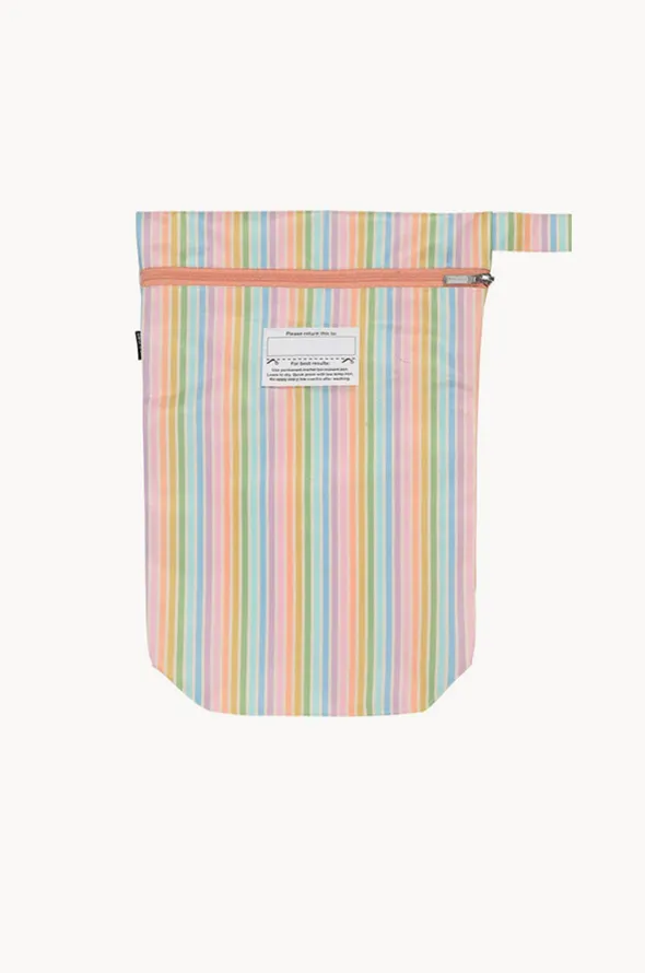 Bedhead Rainbow Wet Bag in Multi features a leak-free bag, carry handle, secure zip closure, and has a return-to label.