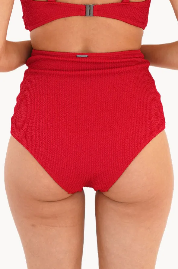 Moontide Retro Deco High Waist Gathered Pant in Hibiscus offers a high rise waist, gathering detail, medium coverage, powermesh, is available in sizes 10-16.