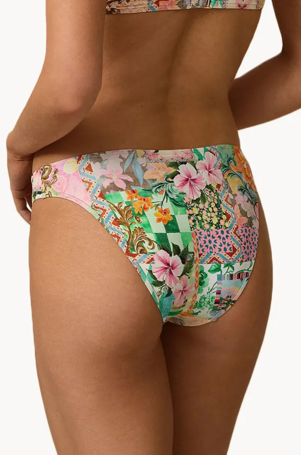 Monte & Lou Simi Newport Pant in Multi features a low rise waist, regular legline, medium coverage, fully lined, sustainable, and is available in sizes 8-14.