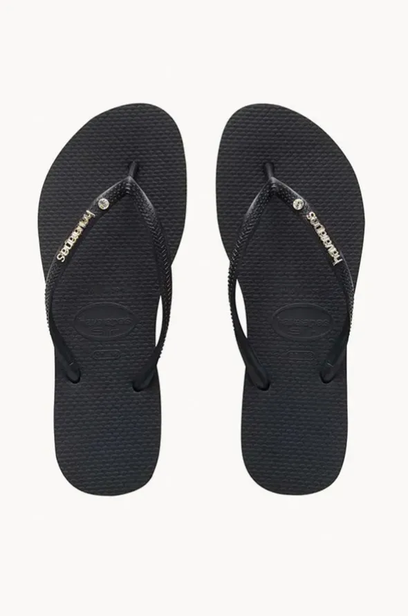 Havaianas Slim Metal Logo Crystal Thong with;