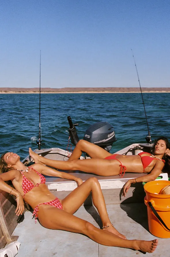 Seafolly Sorrento Tie Side Rio Pant in Flame offers a low rise waist, adjustable tie sides, cheeky coverage, fully lined, and is available in sizes 6-14.