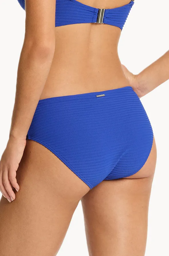 The Sea Level Spinnaker Mid Bikini Pant in Cobalt features a mid rise waist, supportive waistband, powermesh, medium coverage, designed for sizes 8-18.