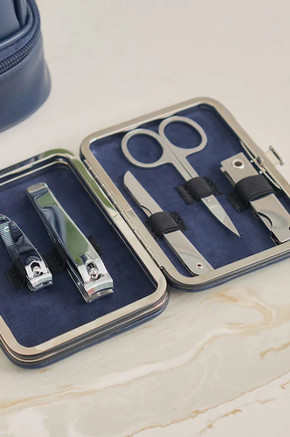 - Set includes: nail scissors, nail clippers, nail file, bottle opener and small blade