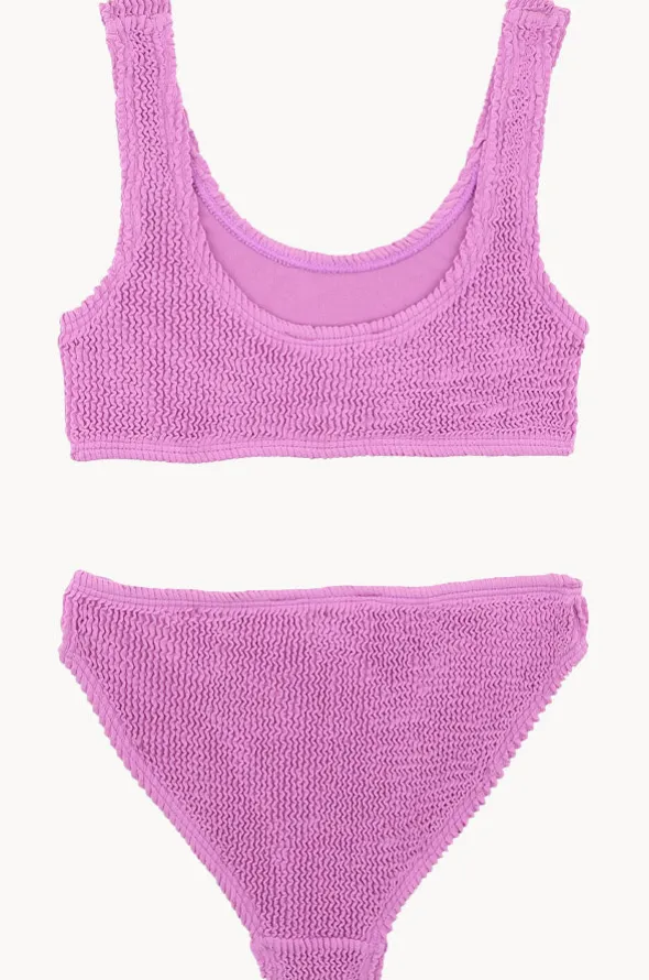 Minihaha Teen Girls Coco Crop Set in Orchid features a crop top, stretch crinkle fabric, hipster pant, fully lined, and is available in sizes 8-14.