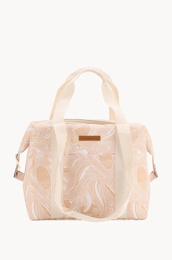 Annabel Trends Trailing Natives Picnic Box Cooler Bag in Tan offers a top zip, side clips, dual handles, and insulated lining to ensure contents stay cool.