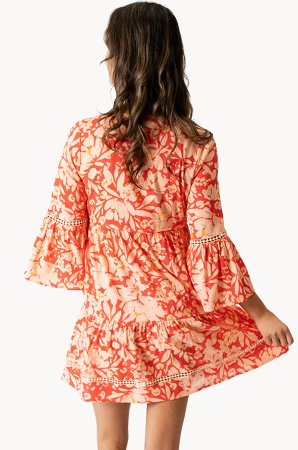 Koy Resort Valencia Bell Sleeve Cover Up in Valencia features a V-shaped neckline, 3/4 length bell sleeves, short length and is a relaxed fit.