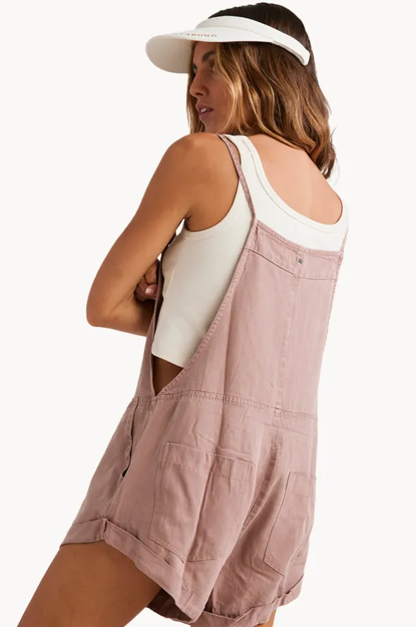 Billabong Wild Pursuit Overalls in Desert features adjustable tie straps, front pocket, rolled hems and is made from a comfortable fabrication.