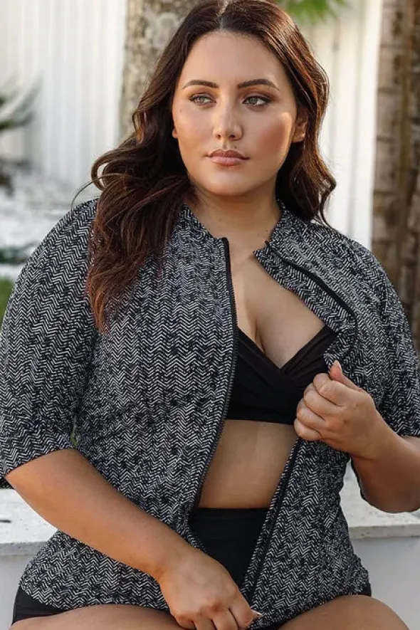 Artesands Zig Zag Short Sleeve Zip Suntop with;