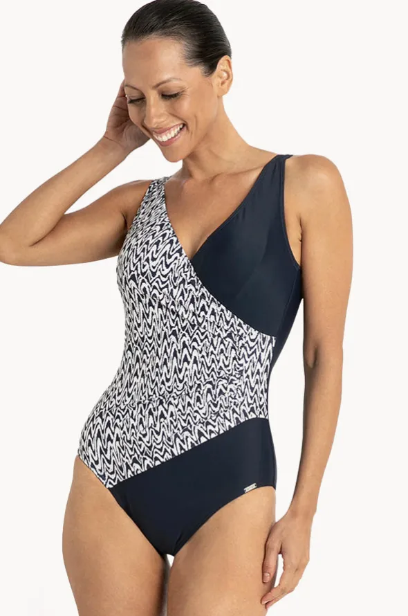 Jantzen Zigzag Gathered Cross Over One Piece with;